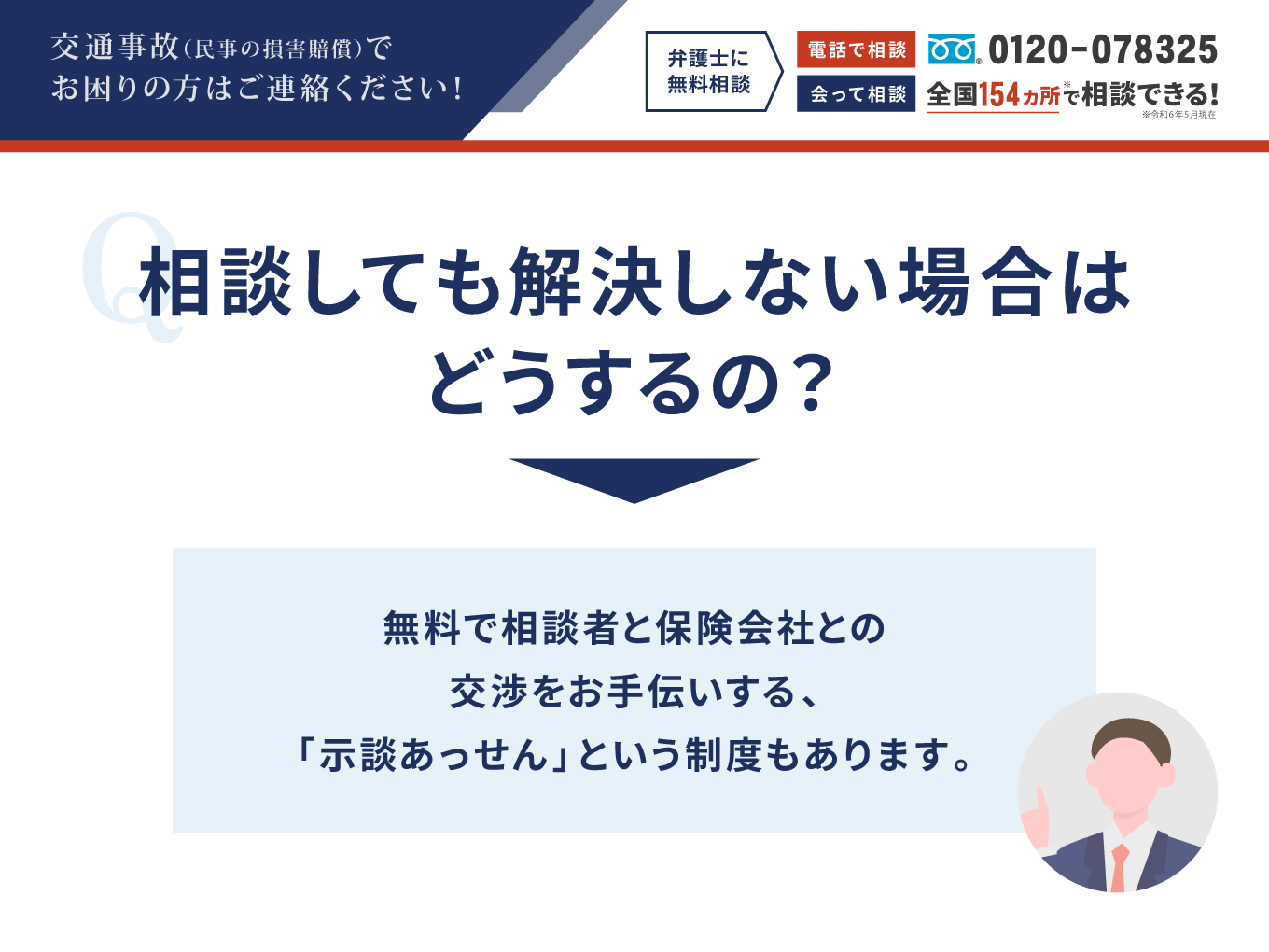 事故の相手方と示談交渉がまとまらない場合、当センターの示談あっせん手続、裁判所の調停手続や裁判手続を利用するなどの方法があります。
