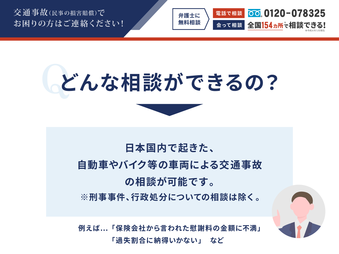 ただし、示談あっせんのため来所される際の交通費等はご自身でご負担ください。