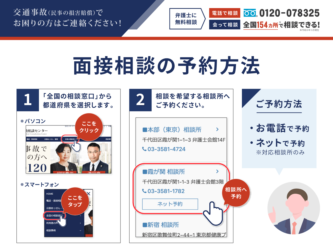 実際の事故における過失割合についてのご相談は、当センターの面接相談をご利用ください。