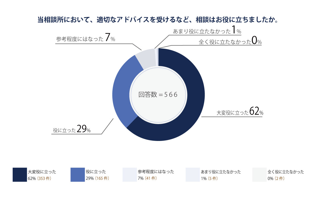 相談者の91%の方が「大変役に立った」もしくは「役に立った」と回答されています(平成30年度実施アンケートより)。